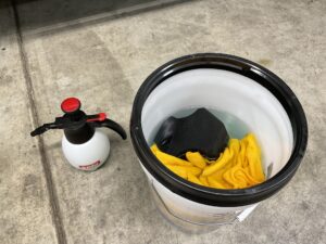 Two popular rinseless wash solutions are Optimum No Rinse and Mckees N914. These are both great products and can double as a clay lubricant or paint prep. The rinseless solution can be pre-applied with a spray bottle or pressure sprayer to encapsulate dirt before the initial contact wash.